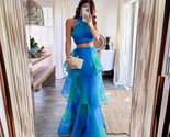 - Summer Vacation Casual Sleeveless Top and Sweet Printed Ruffles Cake Long Skirt