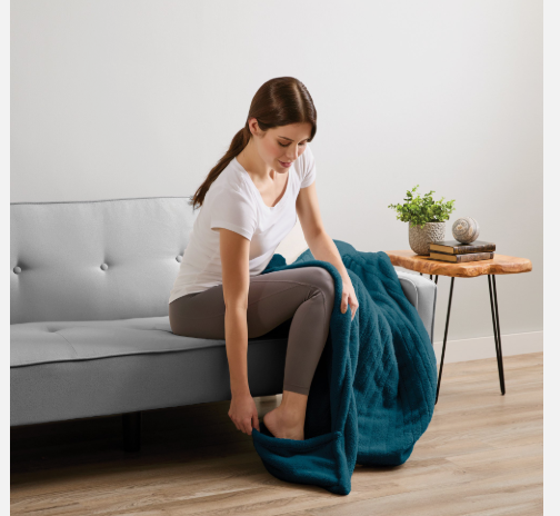 - Sunbeam Microplush Comfy Toes Electric Heated Throw Blanket Foot Pocket Blue Whi