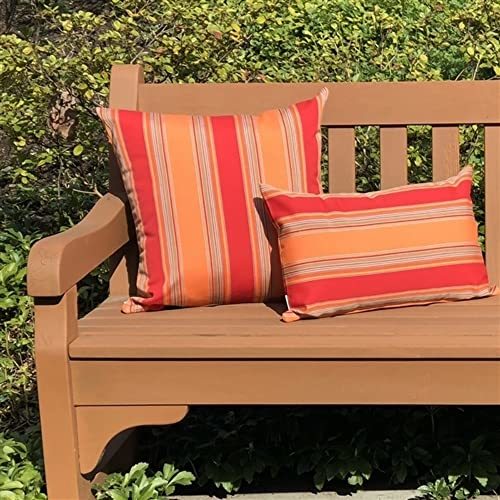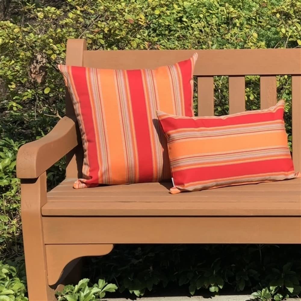 Product description: Rich and vibrant Sunbrella outdoor fabric. Bravada Salsa features wide vertical stripes of red and orange, accented with finer stripes in yellow, mocha beige, blue and ivory. Add a splash of juicy color to your outdoor furniture with these gorgeous pillows. Paired with the rectangular striped version, it really adds punch! Make sure to add in some solid red and orange pillows for a creative collection. These outdoor fabrics are practical and beautiful! This series of outdoor pillows are made with Sunbrella outdoor fabrics. The fresh, cheerful colors add great style to your outdoor space. The durable fabric is designed to look good, yet withstand the elements. Add comfort to your outdoor furniture with a combination of pillows mix up the colors and shapes for a unique and interesting new look. The fabrics all coordinate easily, so you can relax and enjoy the great outdoors!