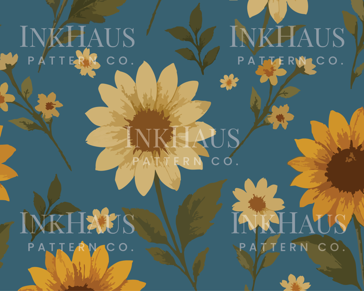 Sunflower Daisy Seamless Pattern - Digital Download for Floral Fabric or Paper