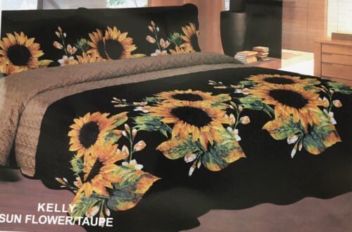 - SUNFLOWER TAUPE & BLACK KELLY PLUSH BEDSPREAD QUILTED SET 3 PCS KING SIZE