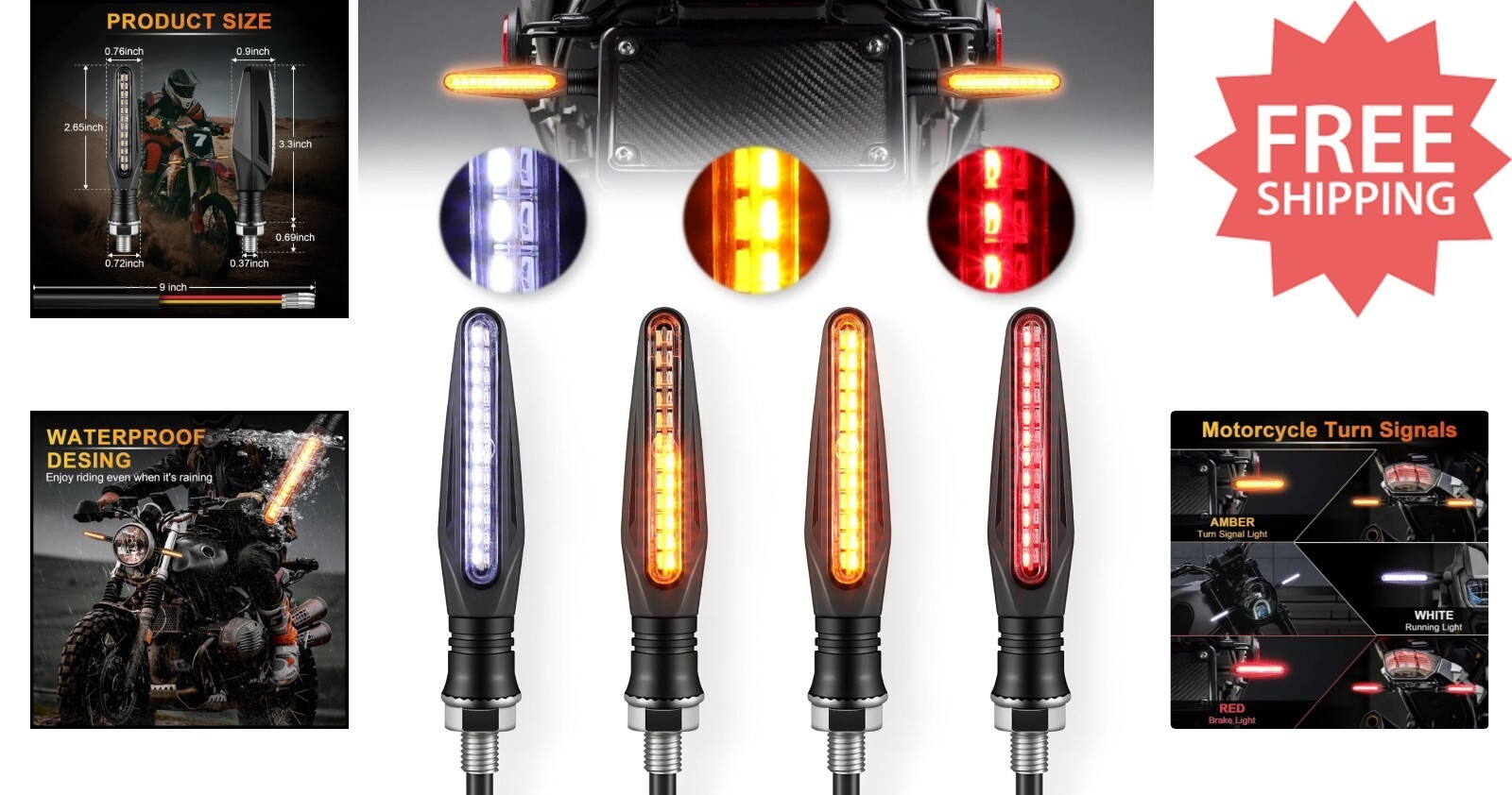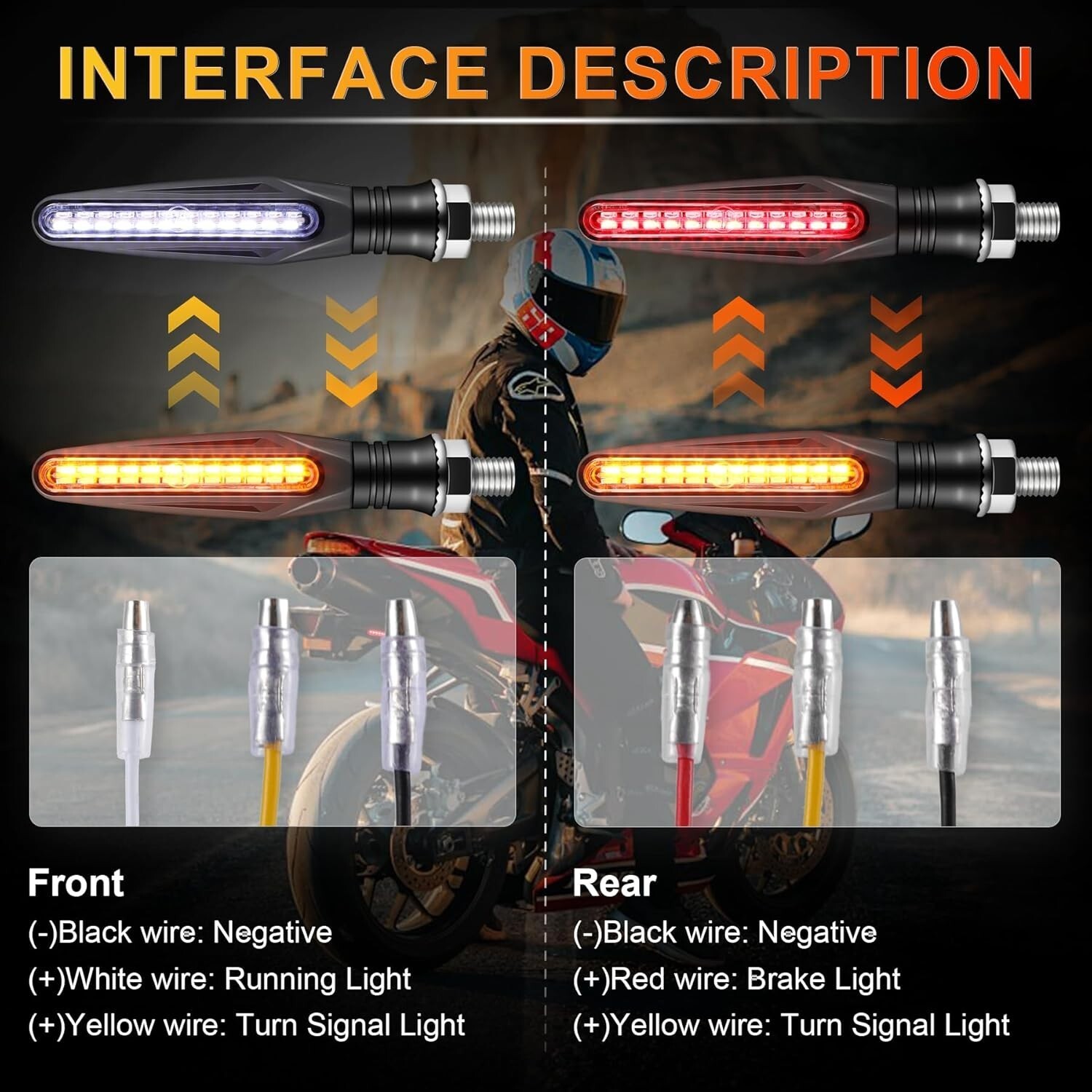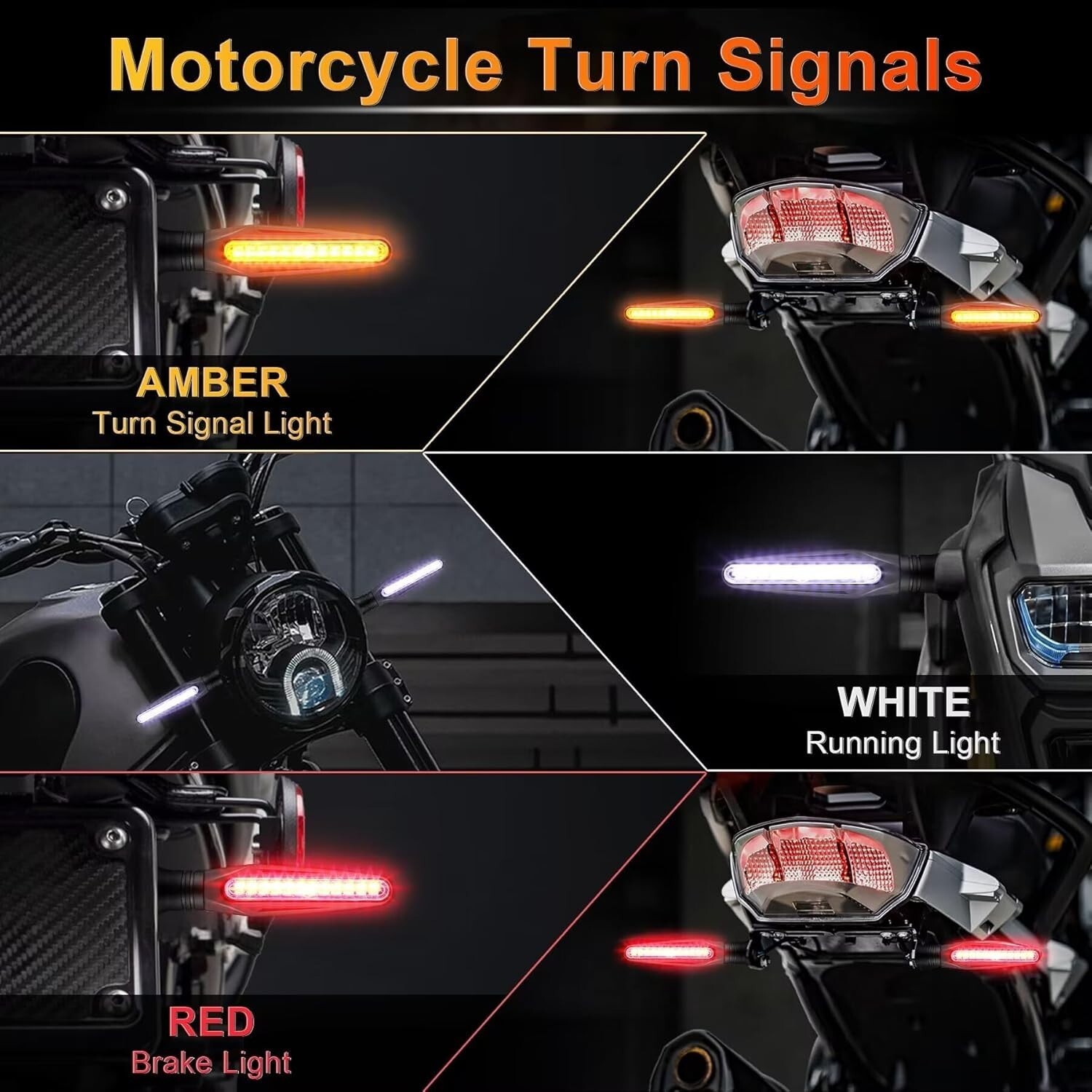 - Super Bright 12V LED Motorcycle Indicators - 4PCS Flowing Turn Signal & Brake...