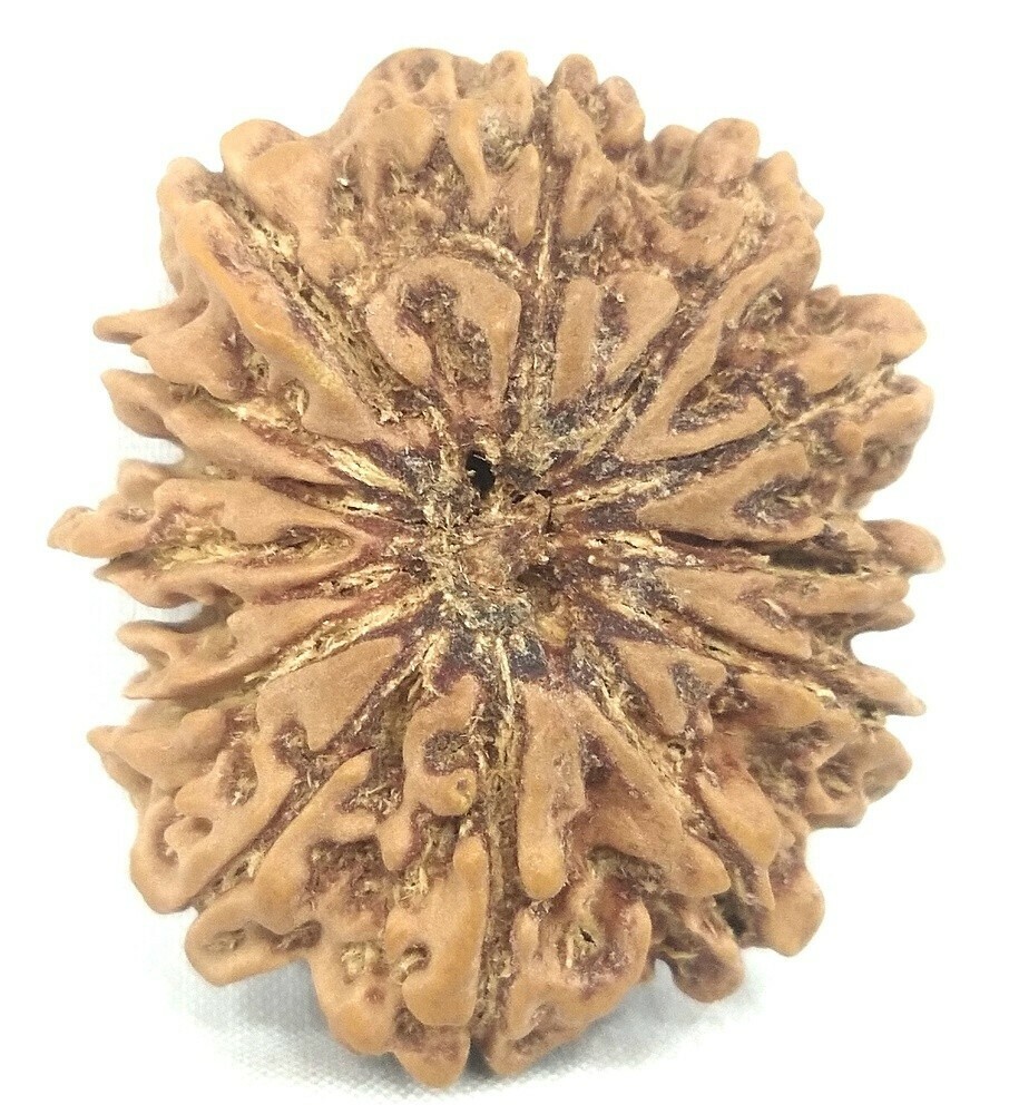14 Mukhi Rudraksha is found most rarely and it pleases Lord Shiva to give the wearer His company. It is the most precious divine thing Deva Mani. It awakens the sixth sense organ by which the wearer foresees the future happenings. Its wearer never fails in his decisions. Its wearer gets rid of all the calamities, miseries, worries. It provides the wearer safety and riches. It is a very powerful antedote for Saturn miseries and provides miraculous cures to several ailments. It is recommended to be worn on chest as a necklace, on forehead on third eye region or on right arm. It helps in achieving moksha (salvation) from the world which is the essence of human life. The wearer of 14 mukhi rudraksha becomes divine and becomes dear to Lord Shiva.