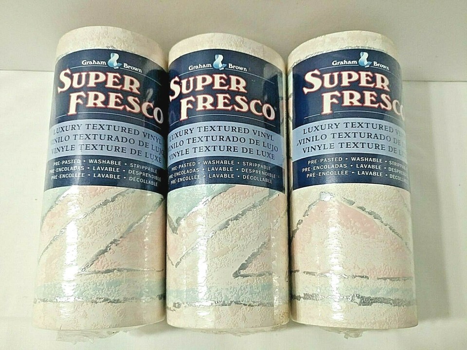 - Super Fresco Wallpaper Border Pink Blue Silver Cream Textured Graham Brown 45 ft