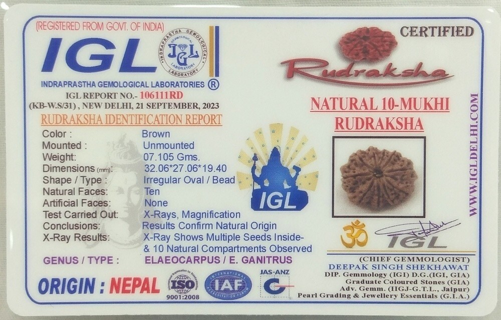 Super collector 10 mukhi rudraksha -32.06 mm - Nepal - Lab Certified