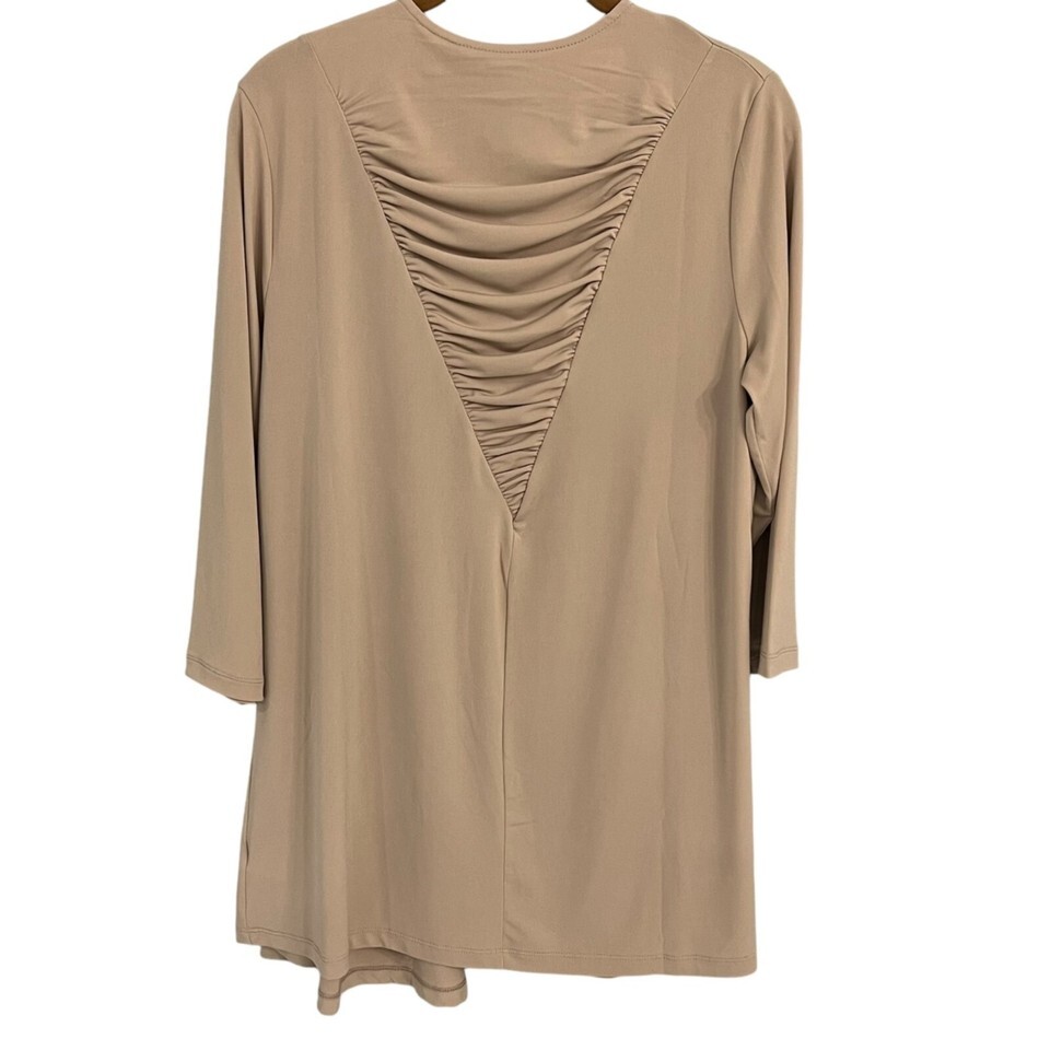 - Susan Graver QVC Womens Beige Cardigan With Ruched Back S 3/4 Sleeves