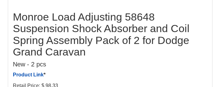 - Suspension Shock Absorber and Coil Spring Assembly-Load Adjusting Monroe 58646