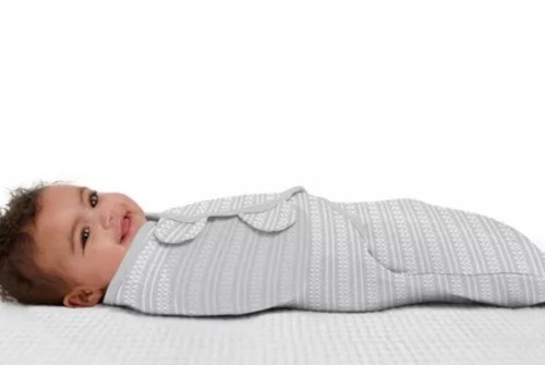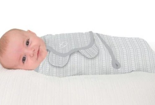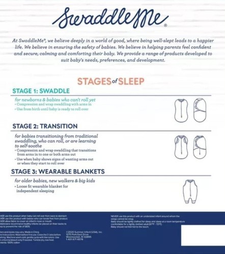 This swaddle is part of Stage 1 in the Swaddle Me Stages of Sleep ~ made for newborns who aren't rolling over yet and like to be swaddled with their arms in
