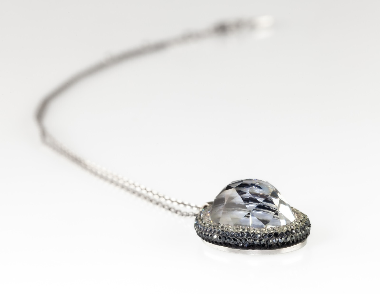 Features Half-Briolette Cut Oval Crystal with Mirror Backing and Gradient Color Crystal Bezel