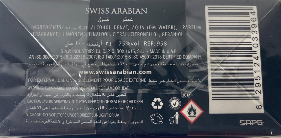 - Swiss Arabian Unisex Shawq EDP Spray 3.4 oz Fragrances. Original Packaging
