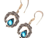 Swiss Blue Topaz Gemstone 925 Silver Overlay Handmade Design Drop Dangle Earrings