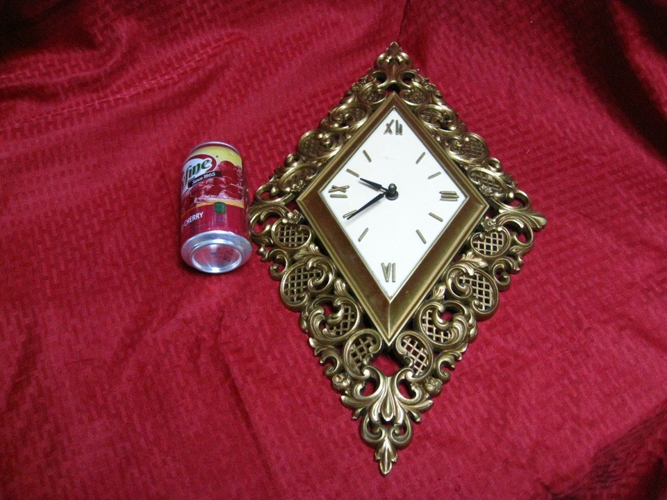 - Syroco Wall Decor 1967 Gold Floral Diamond Shaped Battery Powered Wall Clock