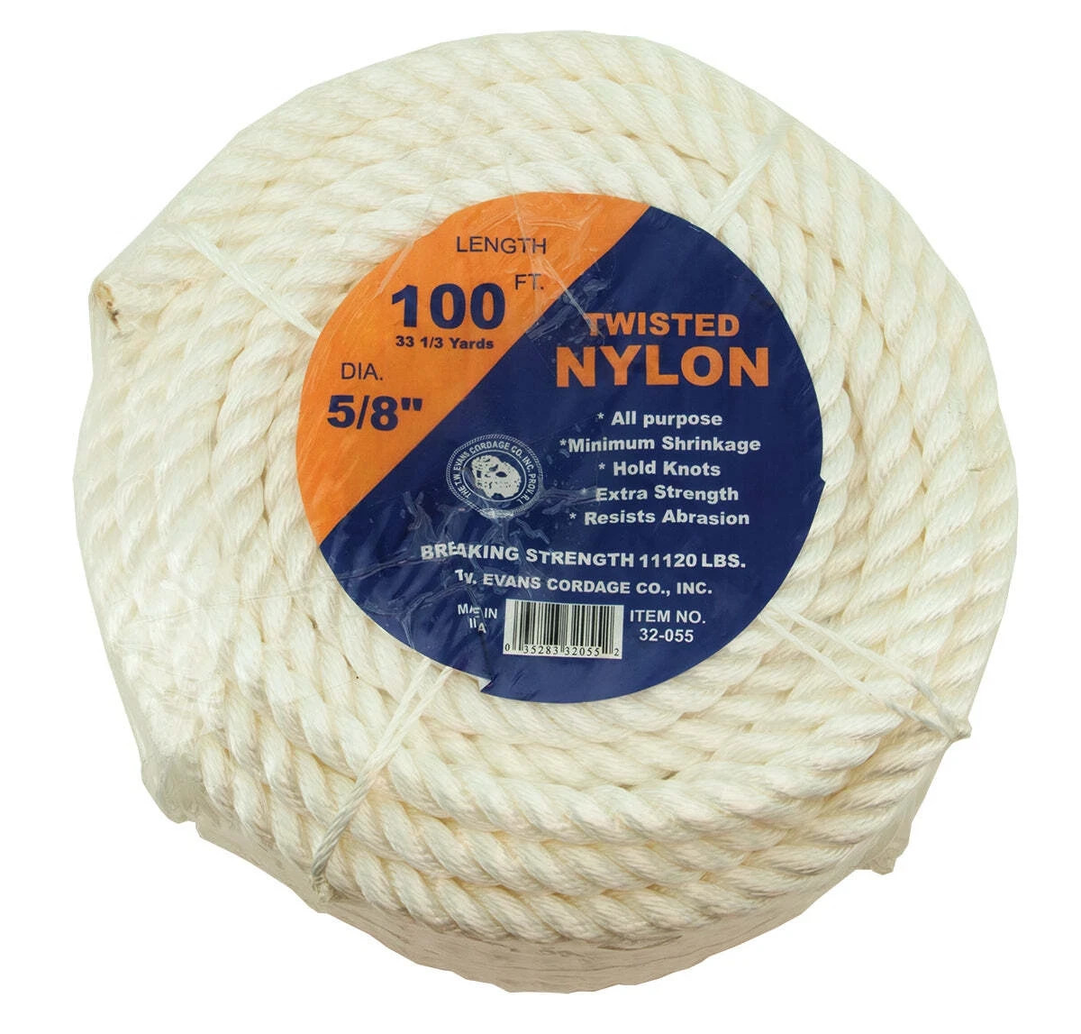 T.W Evans Cordage 32-055 5/8-Inch by 100-Feet Twisted Nylon Rope