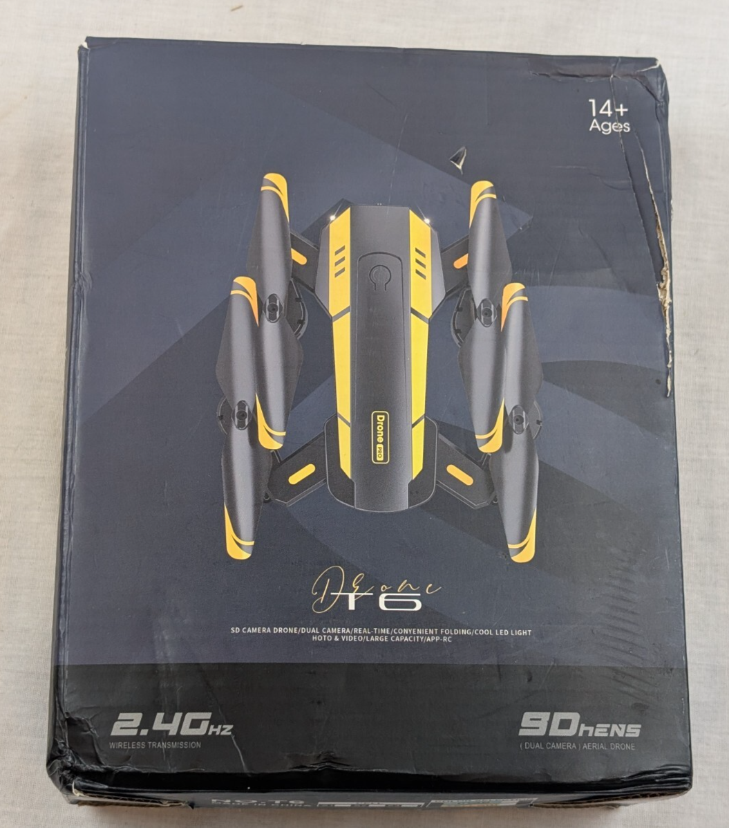 Up for sale is a T6 Drone New In Box, Foldable, Carry Case, SD Dual Camera OPEN BOX