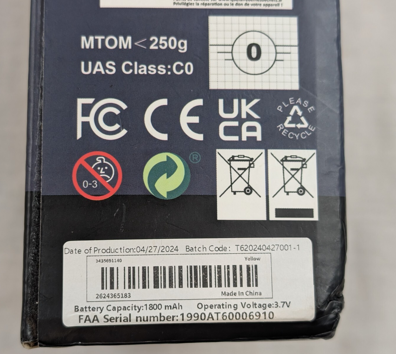 battery still has factory tape on it. These certainly are not DJI quality drone but could be fun for playing around and at a cheap price