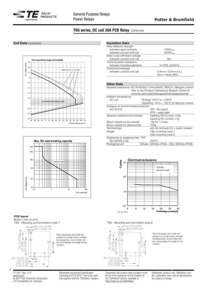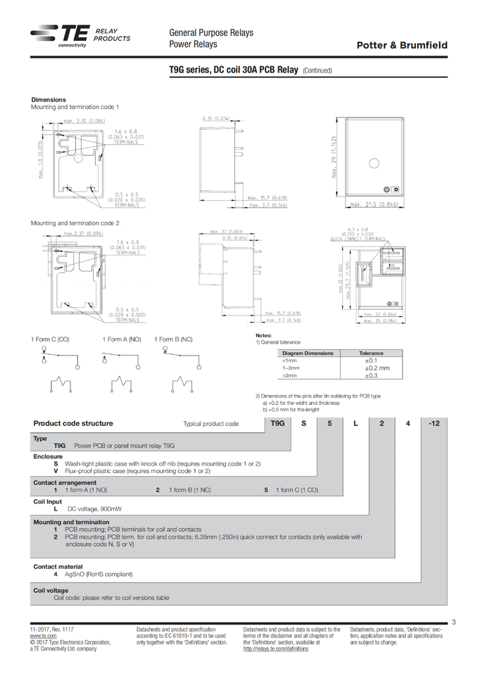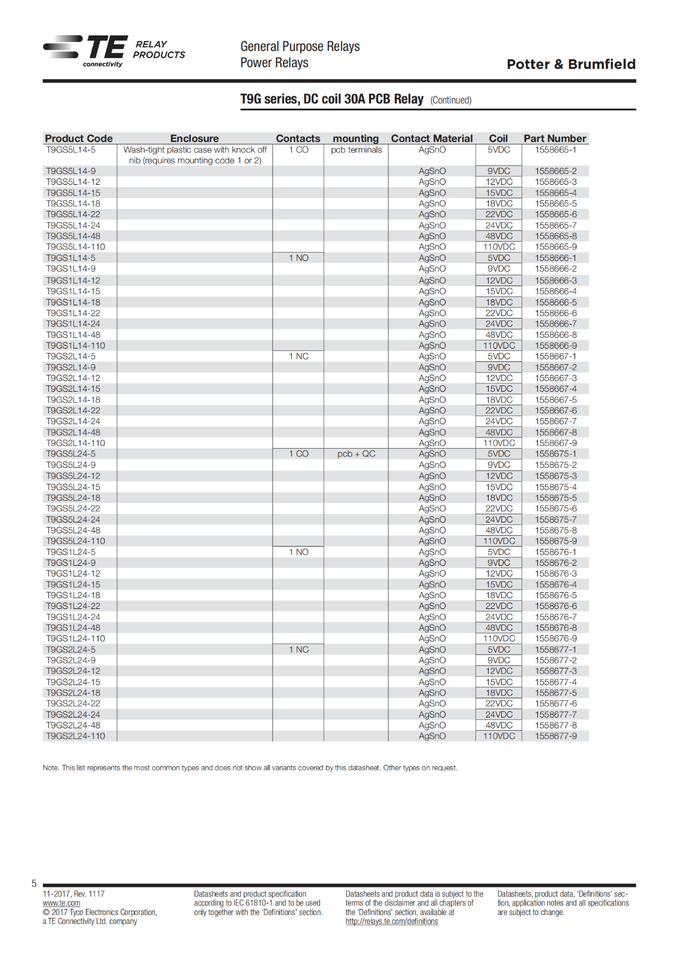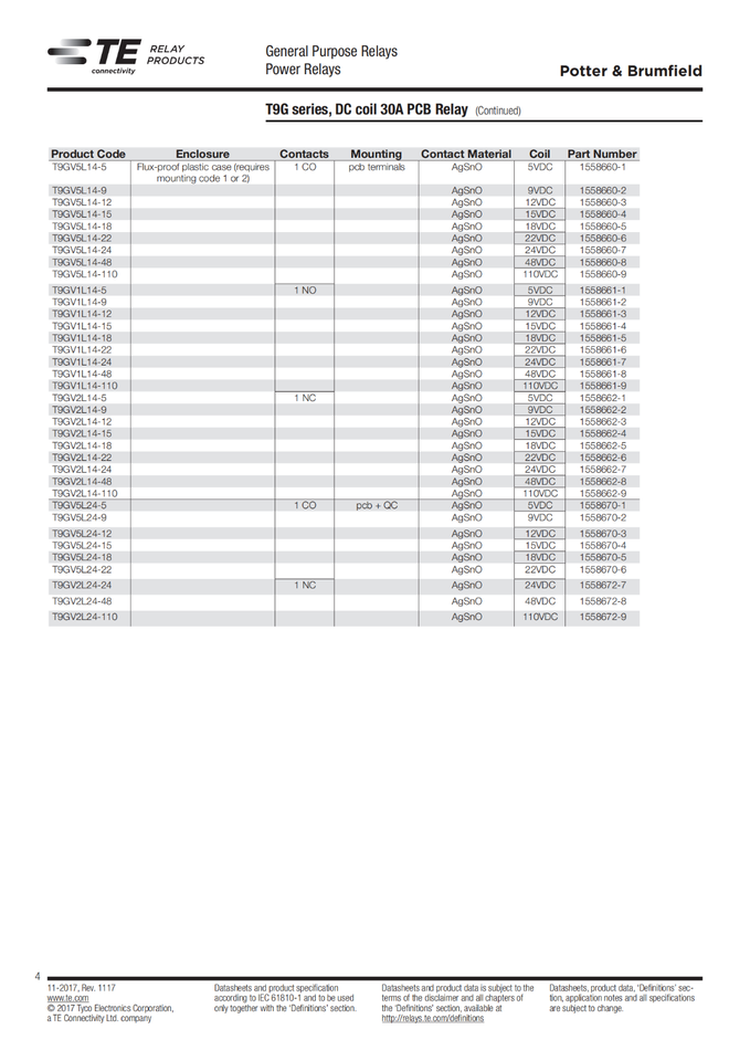 - T9GS2L14-22 Potter & Brumfield 4 Pin Form B General Purpose Relay T9GS2L14-22