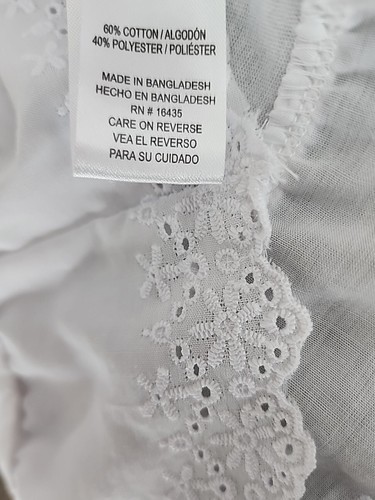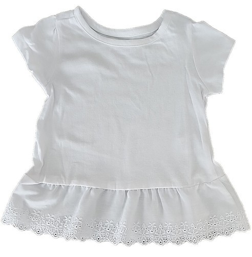 One ~ Short Sleeve ~ Pullover ~ Solid White Top ~ Ruffled ~ Eyelet Hemline (60% Cotton/40% Polyester)