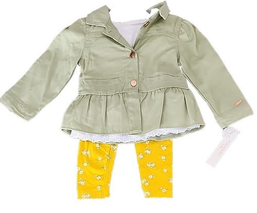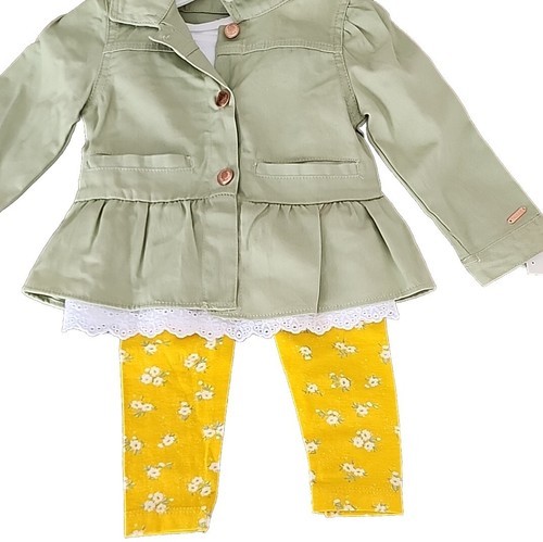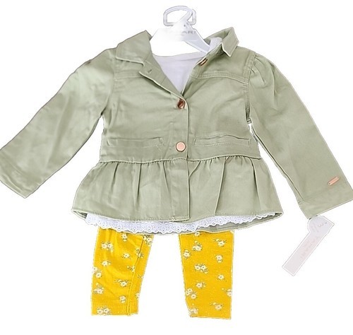 TAHARI Girl ~ 3-Piece Set ~ Green Jacket ~ Floral Leggings ~ White Top ~ Size 3T