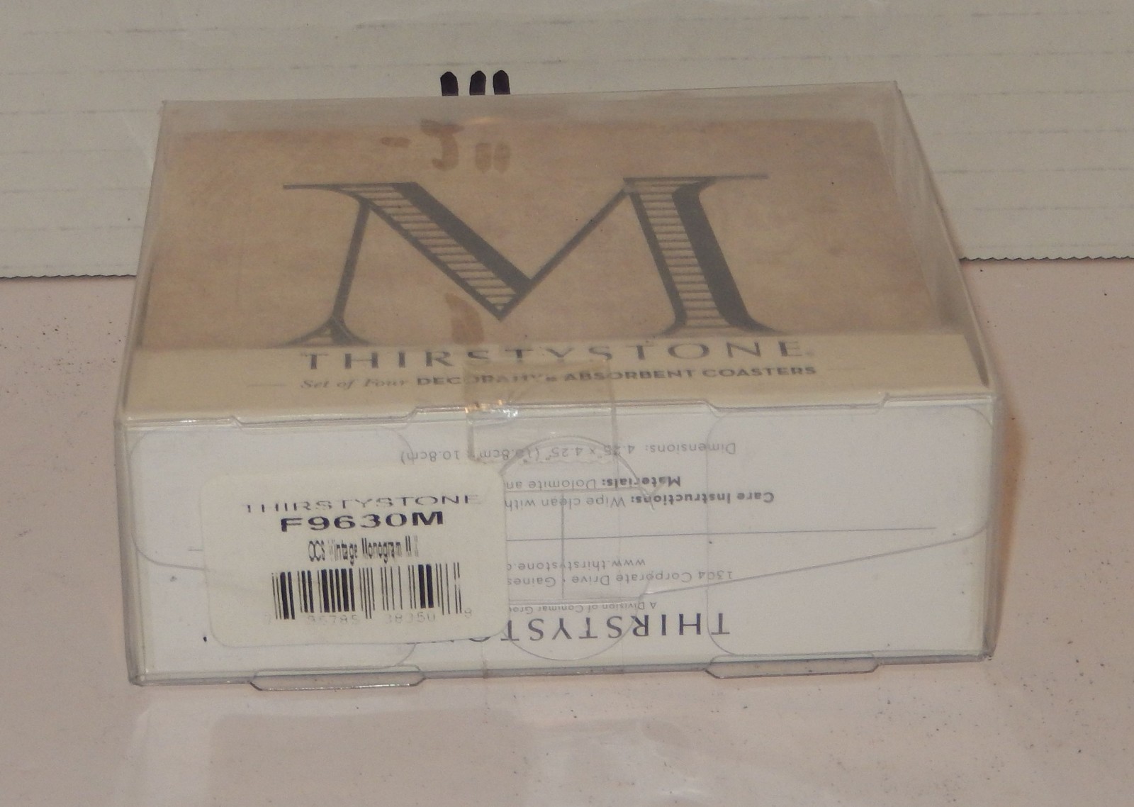 For Sale is a THIRSTYSTONE Absorbent Natural Sandstone Coasters Monogram Letter "M" Set Of 4. Its In good Condition as pictured. Please ask Any and All Questions prior to purchasing. Fast Same or Next day shipping with Free Delivery Confirmation within the U.S. Payment Due within 7 days of purchase (if you need more time please let us know In advance) we love to combine shipping is always a Yes and Most of the time Additional Items Ship for free. SKU4MS