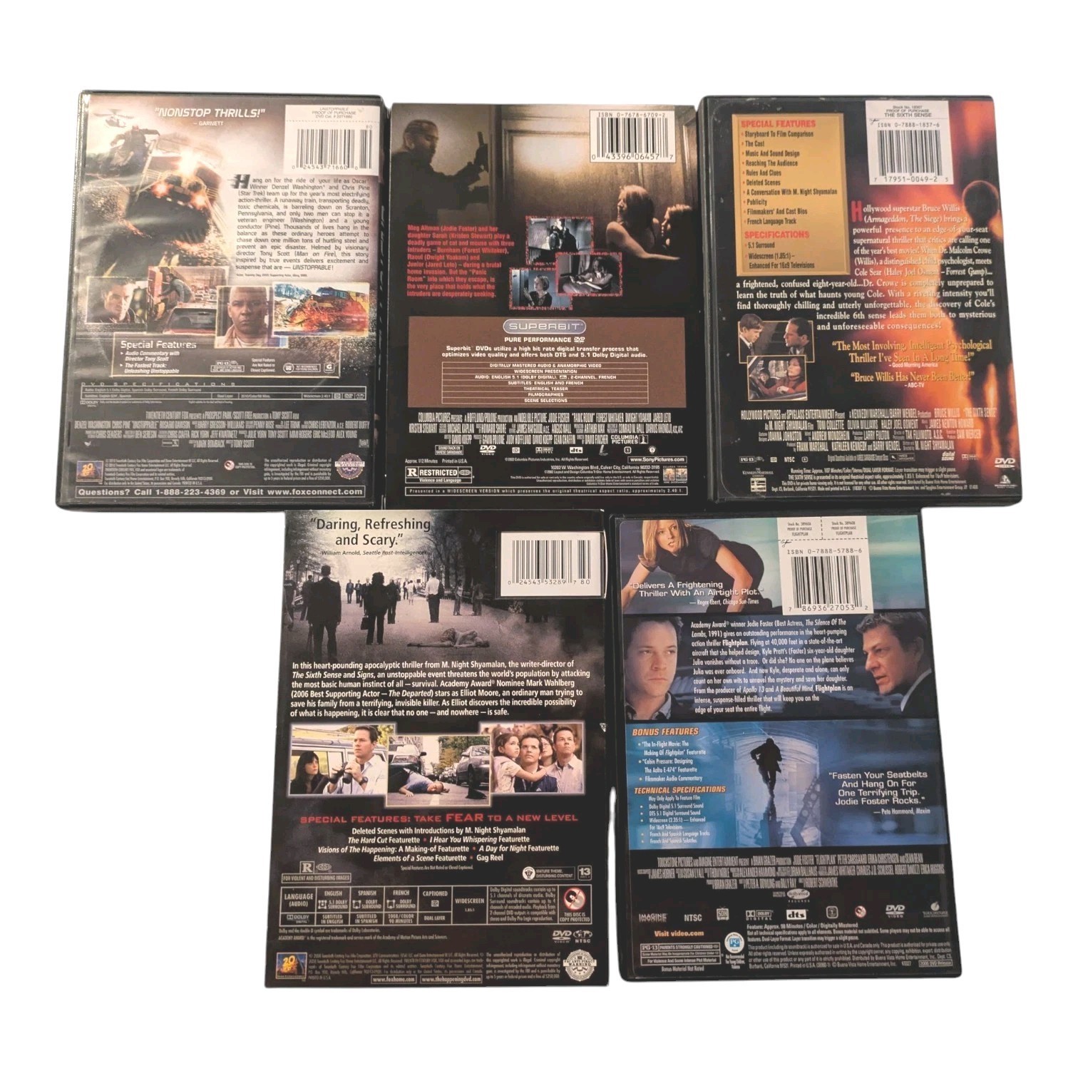- THRILLER LOT-6 DVDs Unstoppable, Panic Room, The Happening, Sixth Sense, Flight