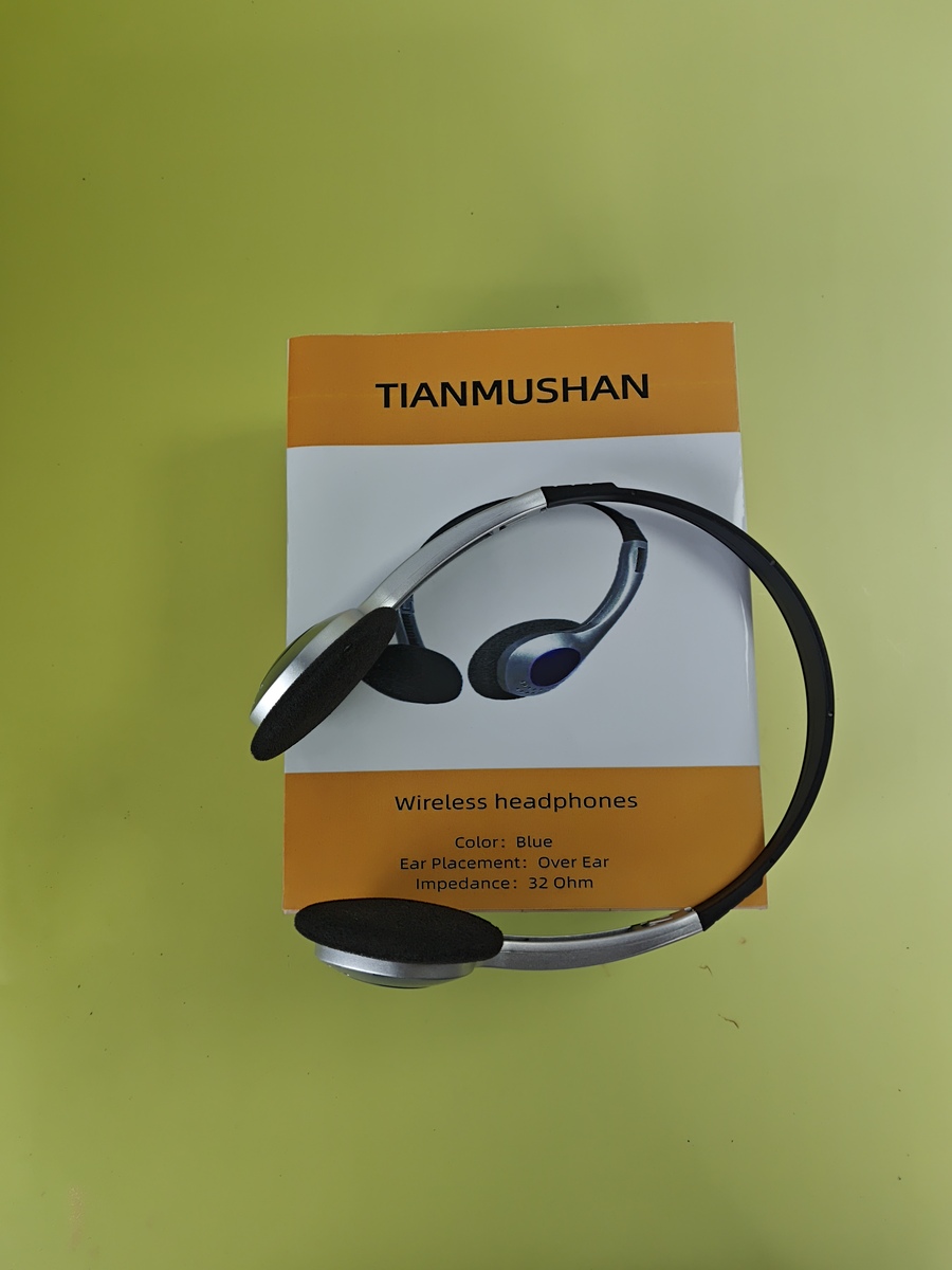 TIANMUSHAN Silver-Blue Over-Ear Wireless Headphones with Noise Cancelling