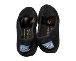 Lightly worn black canvas TOMS shoes in youth size 1 (US). Classic slip-on style with elastic V for easy on/off and signature TOMS blue heel patch. Clean and comfortable?perfect for everyday wear.