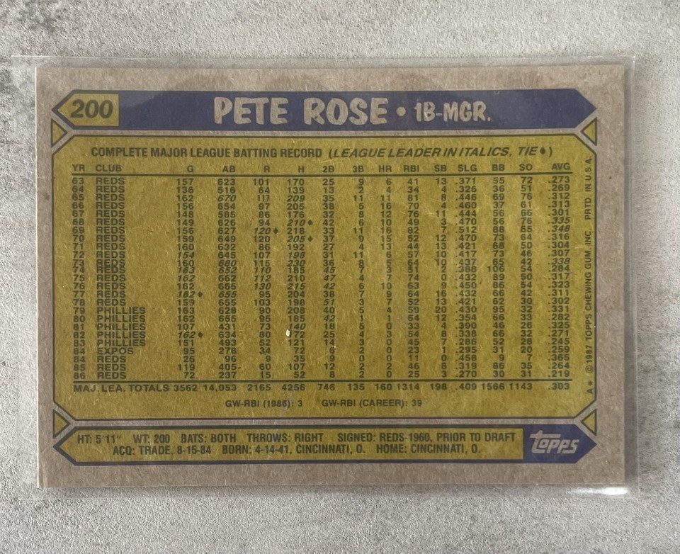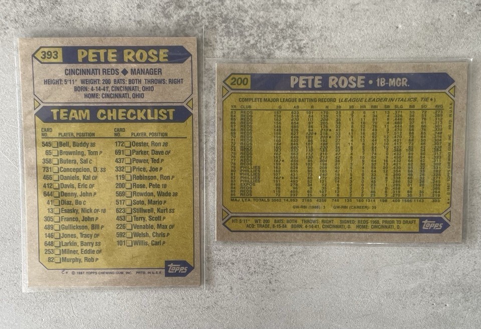 - TOPPS 1987 PETE ROSE Baseball Lot of 2 Card #'s 200 & 393- Player/Manager Cards!