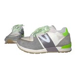 The TRETORN Rawlins Sneakers in women's size 7.5 are a stylish and comfortable option for casual or activewear. These lace-up sneakers feature a colorblock pattern in shades of gray, green, and concrete, with a low-top silhouette and cushioned insole for added comfort. Designed for tennis and other athletic activities, these lightweight sneakers are perfect for the warmer seasons of summer, fall, and spring. Made with a blended fabric upper and rubber outsole, these Tretorn sneakers offer both style and functionality for everyday wear.