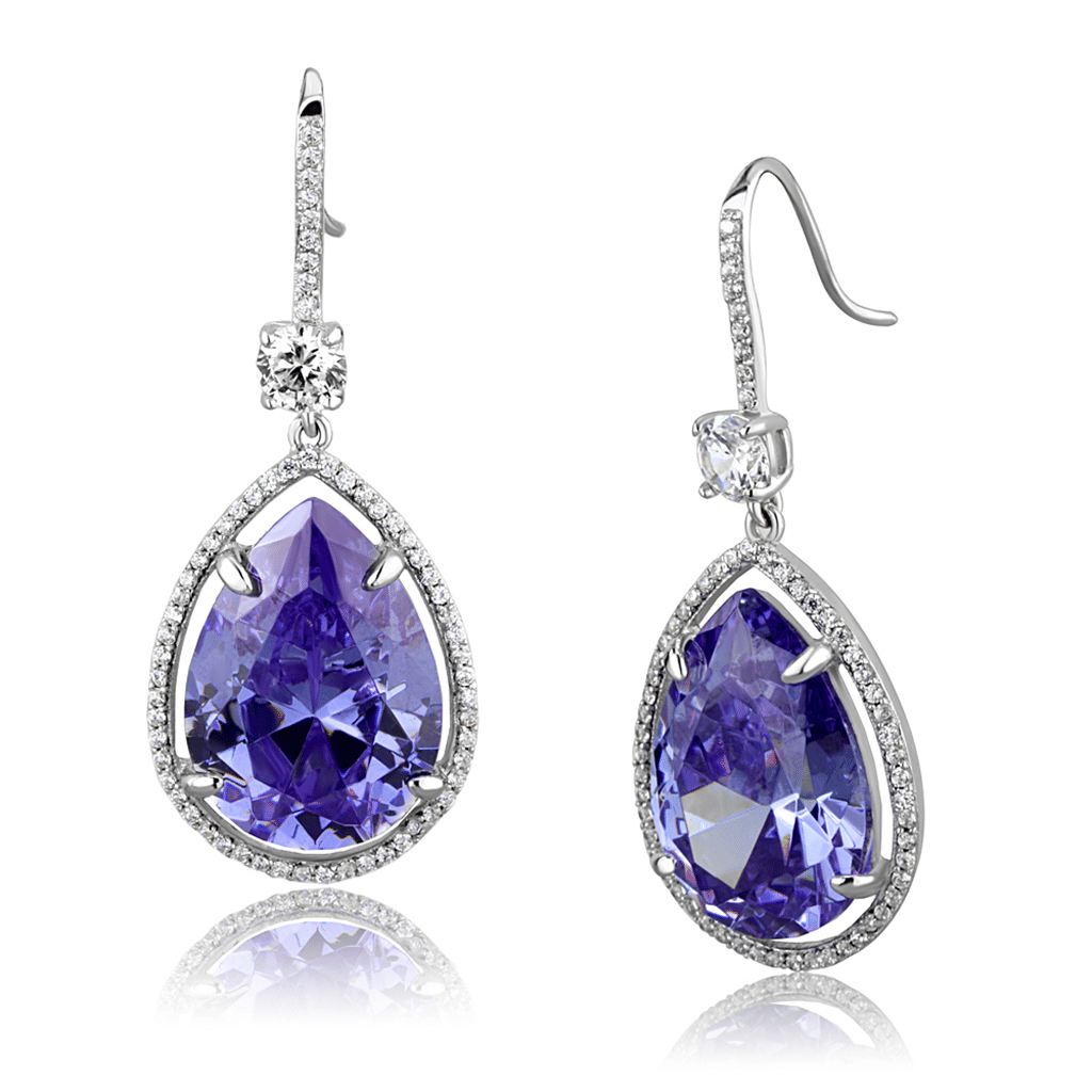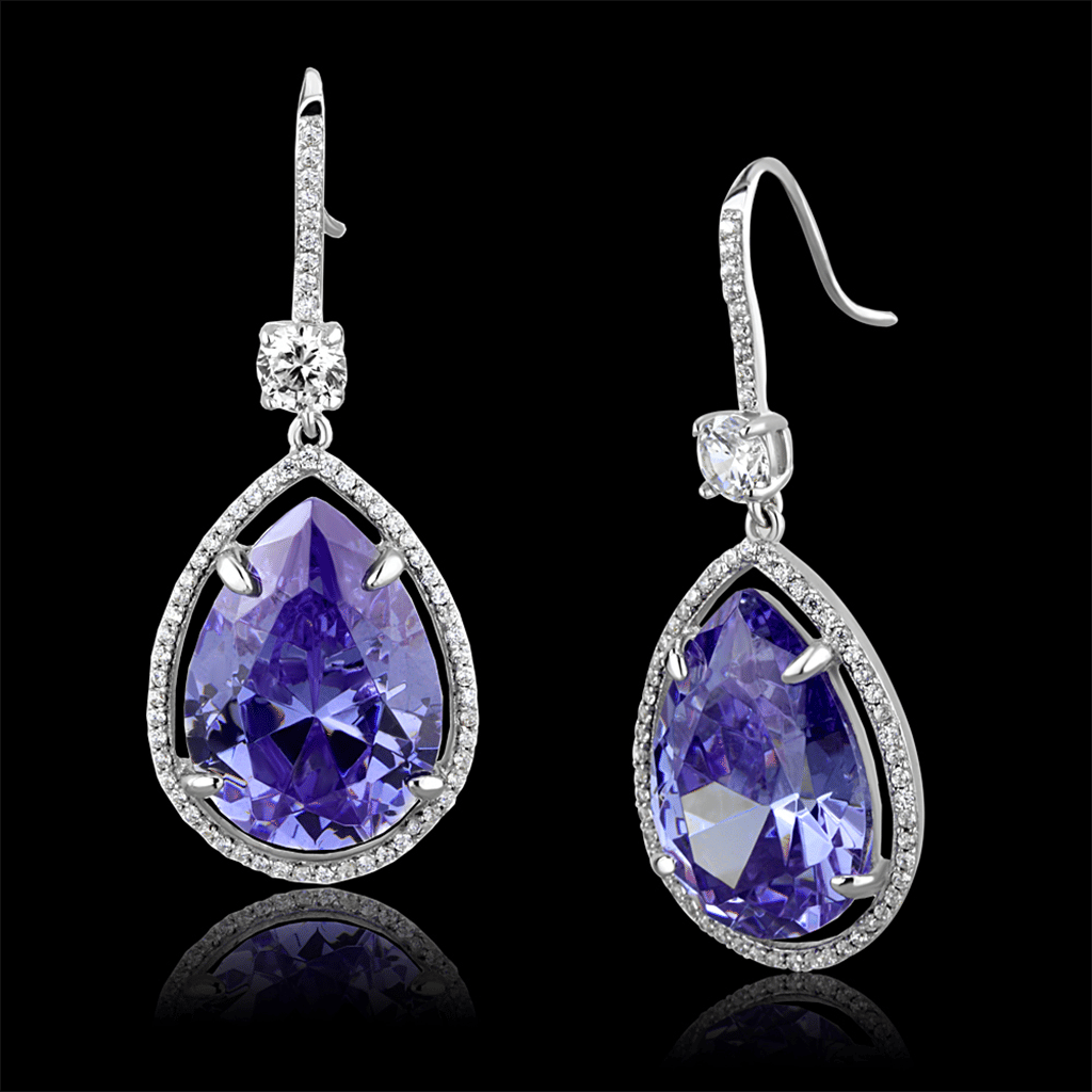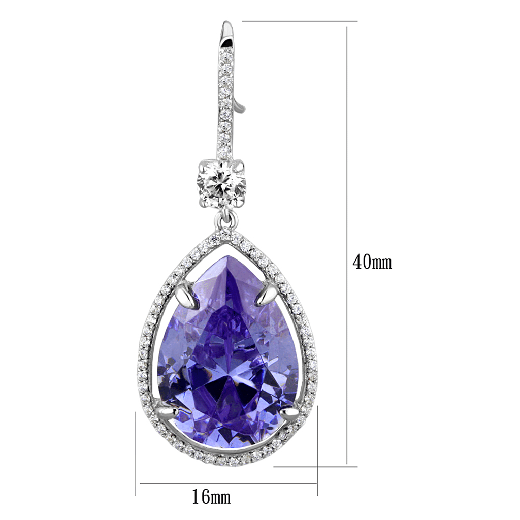 - TS477 - Rhodium 925 Sterling Silver Earrings with AAA Grade CZ in Light Amethys