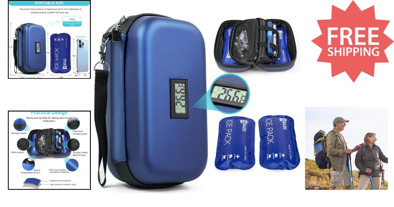 Stay organized and maintain the ideal temperature for your diabetic supplies with the Gosemai Health Insulin Cooler Travel Case. Featuring a built-in Fahrenheit temperature display for real-time monitoring, this portable, insulated bag is crafted with durable EVA exterior and aviation heat insulation pearl cotton lining, ensuring excellent waterproof performance and temperature regulation. No electricity is required?simply freeze the TSA-approved ice packs for 8-12 hours to keep your medications cool for 3-6 hours, even in temperatures below 86F. The spacious interior comfortably fits 3-4 insulin pens, syringes, and other essentials, making it perfect for travel. Easy to use: freeze the ice packs, pack your medicines, and enjoy reliable cooling on the go. To ensure fast and reliable delivery, we work with multiple fulfillment partners and suppliers. Depending on availability and location, your order may ship from different warehouses or arrive in packaging that varies from item to item. Tracking details are typically provided shortly after shipment, and customer satisfaction remains our top priority. Please note that due to carrier policies and regional regulations, certain items may not be eligible for delivery to specific states or territories.