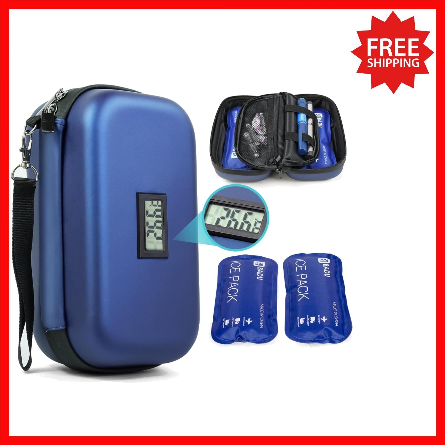 - TSA Approved Insulin Cooler Travel Case with Temperature Display and 2 Ice Packs