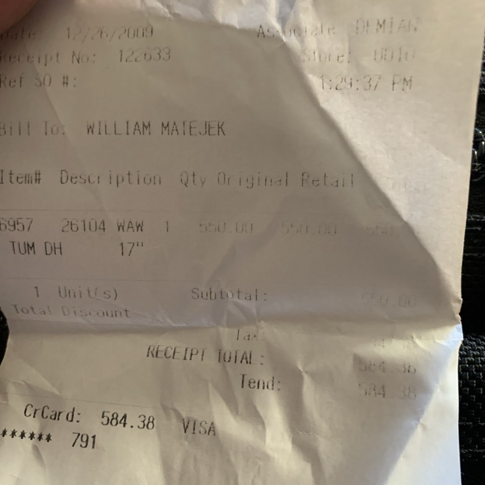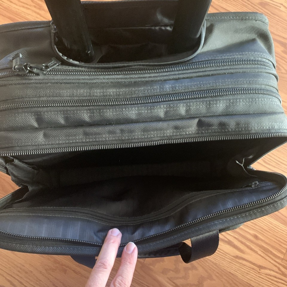 - TUMI Deluxe Briefcase/Luggage 2-Wheel 26104DH Carry-On Nylon Black 17x13x10