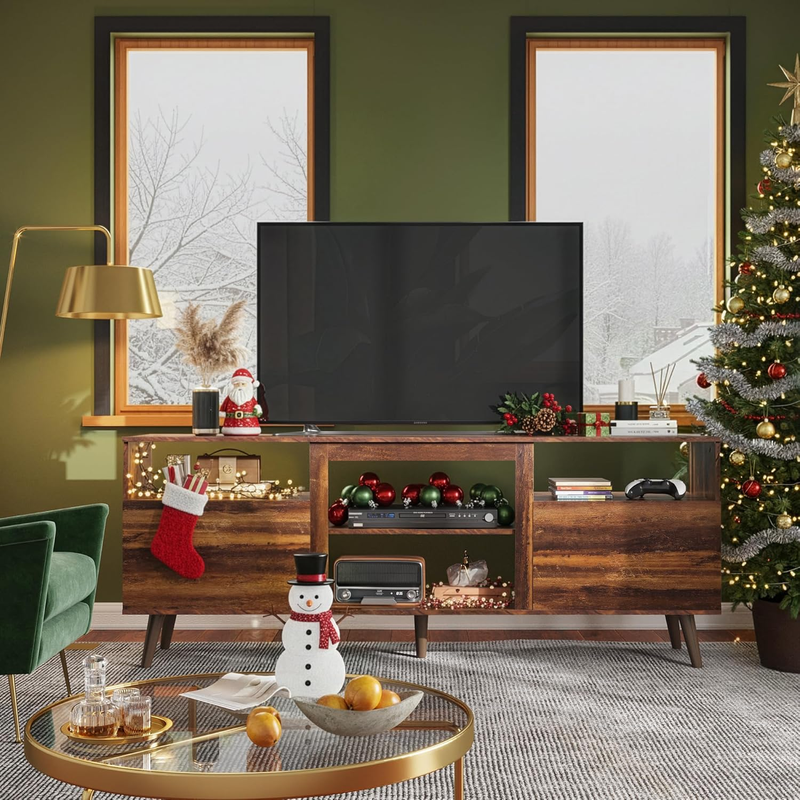 Store New Arrivals Add to Favorite View Feedback Contact TV Stand for 65 Inch TV, 58 Inch Entertainment Center with 2 Storage Cabi Description Item model number ADSG028PL Style TV stand without fireplace Top Material Type Engineered Wood Room Type Bedroom, Living Room Number of Compartments 6 Assembly Required Yes Number of Doors 2 Number of Drawers 2 Material Engineered Wood Style TV stand without fireplace Storage Options Cabinet Installation Type Freestanding Frame Material Engineered Wood Model Name ADSG028 Wood TV Stand With Leg/PL Finish Type Polished Included Components Shelves Door Style Flat Panel Item Weight 56.1 pounds Is Customizable No Number of Shelves 4 Ground To Item Distance 0.01 Inches Special Feature Adjustable Shelf, Removable Shelf, Scratch Resistant Weight Limit 110 Pounds Assembly Instructions Description Includes a detailed installation manual and a set of installation tools to help you easily complete the TV Console. Number of Levels 3 Mounting Type Floor Mount Color Retro Brown Shape Rectangular Base Type Legs Back Material Type Engineered Wood Product Dimensions 15.7"D x 58.3"W x 25.4"H Size Onesize ?Perfect Fit for Large TVs?Generously sized to accommodate most 55 to 65-inch televisions. The reinforced top panel is built to securely hold up to 150 lbs, providing a sturdy and reliable base for your valuable electronics ?Ample Intelligent Storage?Keep your space tidy and organized. Features two spacious cabinets and a 3-level adjustable shelf behind the doors, offering flexible storage for media consoles, gaming gear, books, and more. Say goodbye to tangled wires with specially designed cable management holes for a clean, clutter-free look ?Timeless Mid-Century Design?Enhance your decor with this stylish retro-brown entertainment center. Its classic modern design, characterized by clean lines and elegant five-leg support, adds a touch of sophisticated craftsmanship to any room ?Built to Last with Durable MDF?Crafted from high-quality, engineered wood (MDF), this TV cabinet promises long-lasting durability and resilience. It?s a beautiful piece designed for everyday use ?Hassle-Free Assembly Support?We?ve made setup straightforward. The package includes all necessary tools, hardware, and clear, step-by-step instructions. Should you have any questions, our responsive customer service team is ready to assist you Product description ABOUT US We offer the best prices around on high quality products. Our E-store includes media such as books, movies, music and games while offering electronics, toys, sporting apparel, clothing, tools, general home, garden items and more. SHIPPING We are always working hard to ensure your package arrives as soon as possible. Please understand that some factors like weather, high postal traffic, and the performance of shipping companies are outside of our control. RETURNS We offer a 30-Day Return Policy on items which you are not completely satisfied with. You have the option for a full-refund or an exchange of the item. PAYMENT We accept PayPal. CONTACT US This page content is yet to come Please ad us to your favorite seller and visit again later Thank You CUSTOMER SATISFACTION We try our very best to make sure every customer is completely satisfied. If there's a problem, message us! We're happy to help.