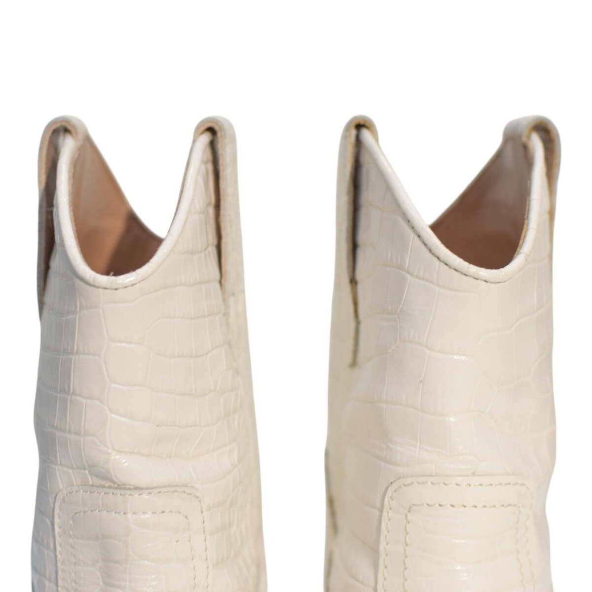 - TWINSET Milano White Croc Embossed Leather Cowboy Booties Block Heel Western 38