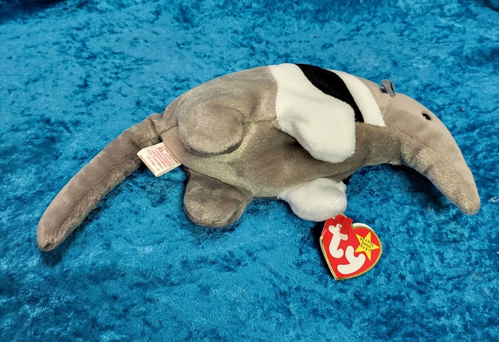 The TY Beanie Baby - ANTS the Anteater is a collectible plush toy produced by Ty in 1998. Designed for ages 3 and up, this Beanie Baby features the lovable Anteater character, making it a popular choice among collectors and fans of the brand. With its high-quality craftsmanship and nostalgic appeal, this toy is sure to bring joy to both children and adult collectors alike.