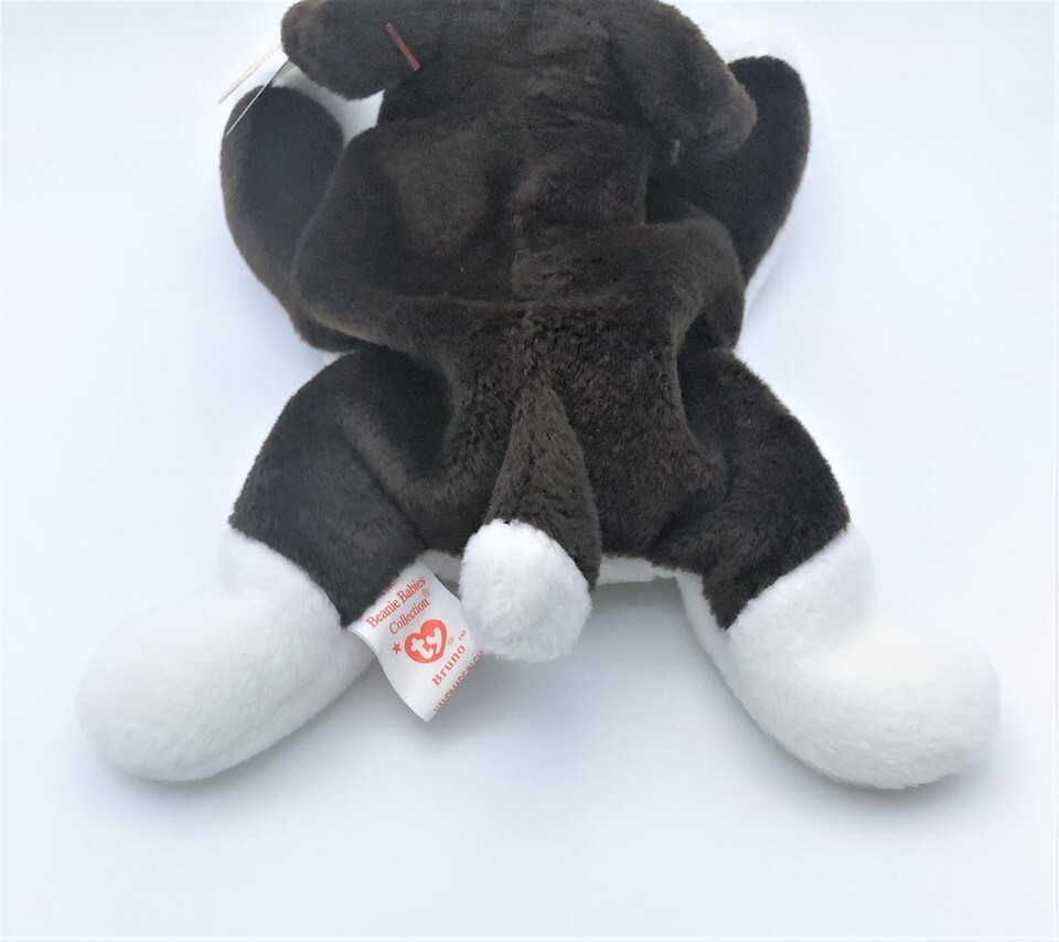 Ty Beanie plush toy animal. Beanie baby is in good, clean condition, just has wear on the tag from storage. Still has tush tag and heart tag attached. Bruno the dog is 8 inches from head to tail with a date of birth 9/9/1997.