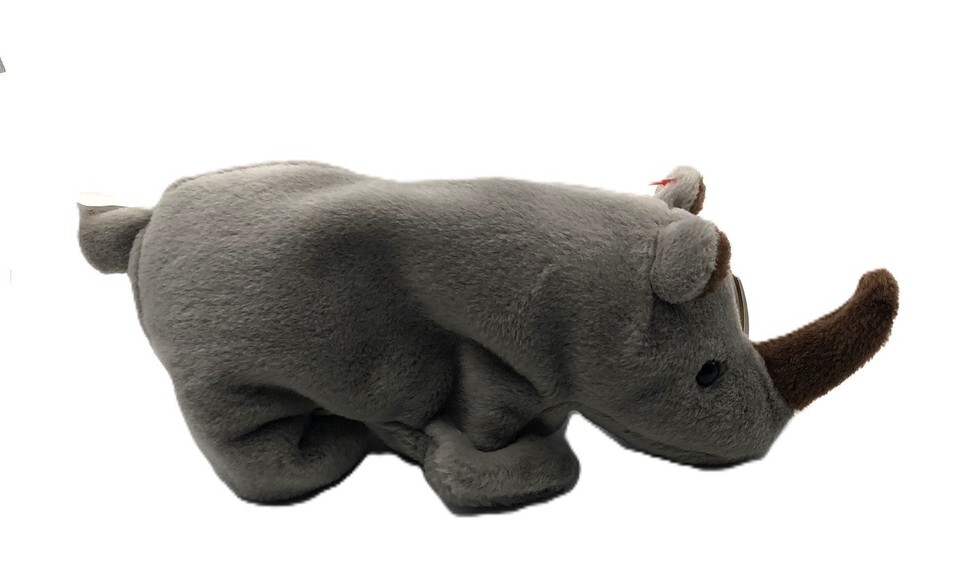 - TY Beanie Baby Spike the Rhino 7 inches DOB 8/13/1996