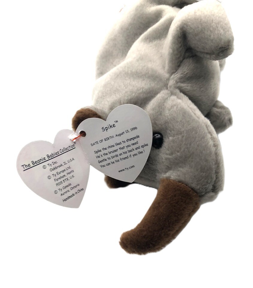 Ty Beanie plush toy animal. Beanie baby is in good, clean condition, just has wear on tag from storage. Still has tush tag and heart tag attached. Spike is 7 inches long from horn to tail with a date of birth 3/19/1996.