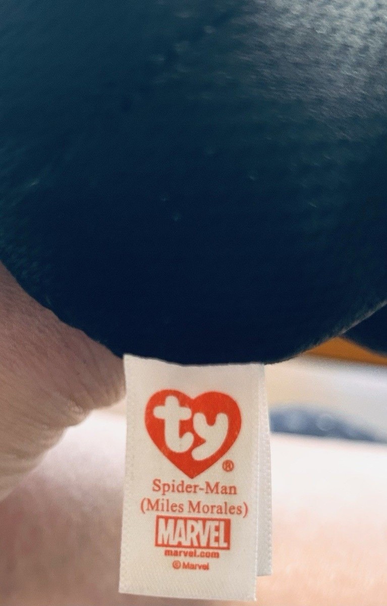 - TY Spider-Man Plush 6" Black Red Miles Morales Silver Glittery Eyes