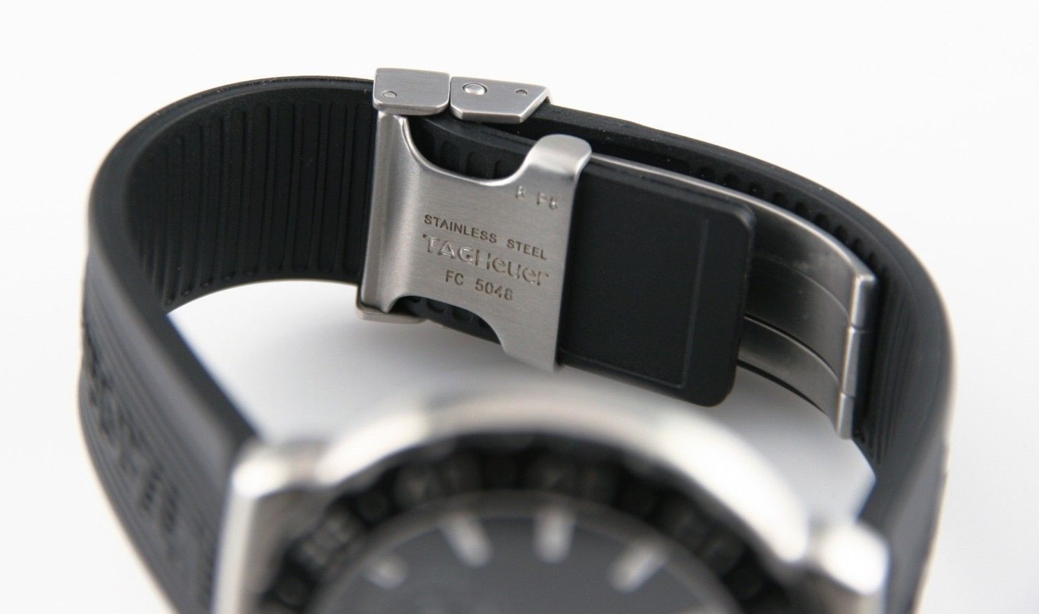 Schwarzes Silikon -Tag -Heuer -Band mit verstellbarem Edelstahlverschluss
