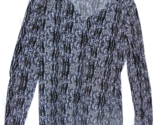Description: Pretty stretchy and stylish pullover blouse. Silver metal accent/peephole neckline. Abstract design. Great for work, church, etc.