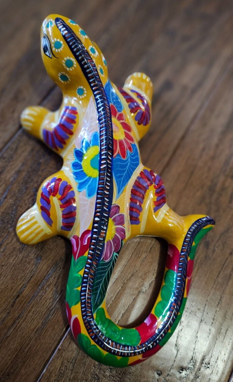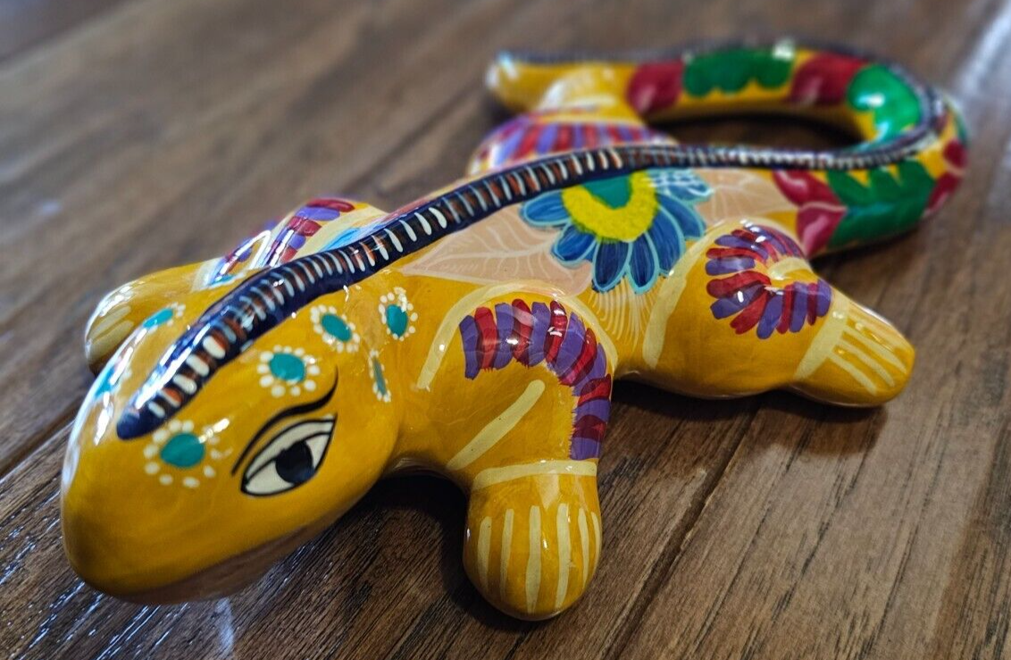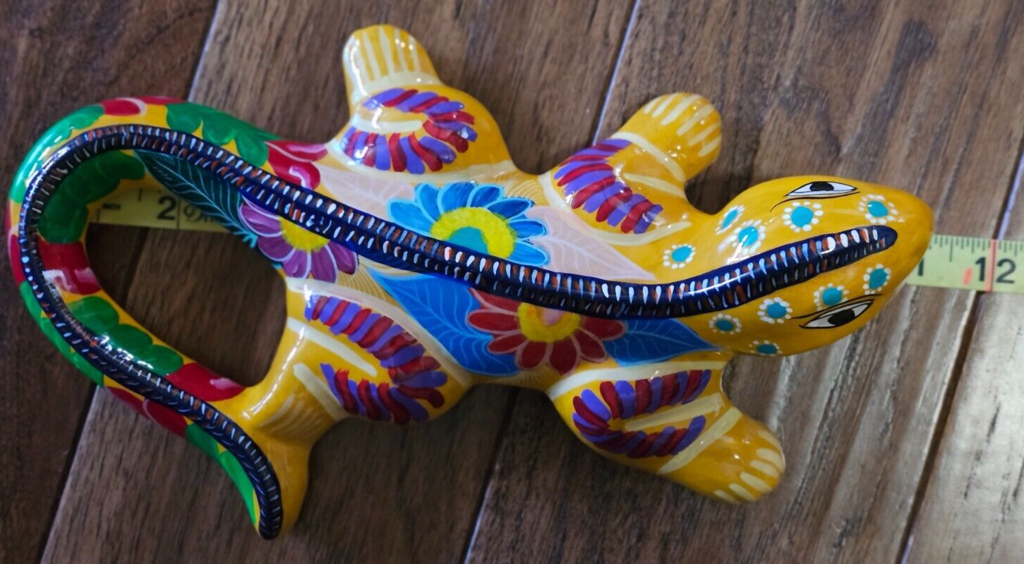 - Talavera Hand Painted Pottery Ceramic Mexico Yaguana Lizard Figure Deco 11"