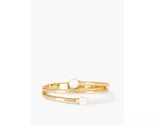 A blend of modern with classic details. Crafted from glossy gold in wrap design with gleaming pearls on each end.- Hinge closure - Fit: 2 4/10" x 2 1/10" - Material: 80% Zinc Casting, 19% Glass Pearl, 1% Cubic Zirconia - Color: Ivory Pearl/Gold - $44.50.