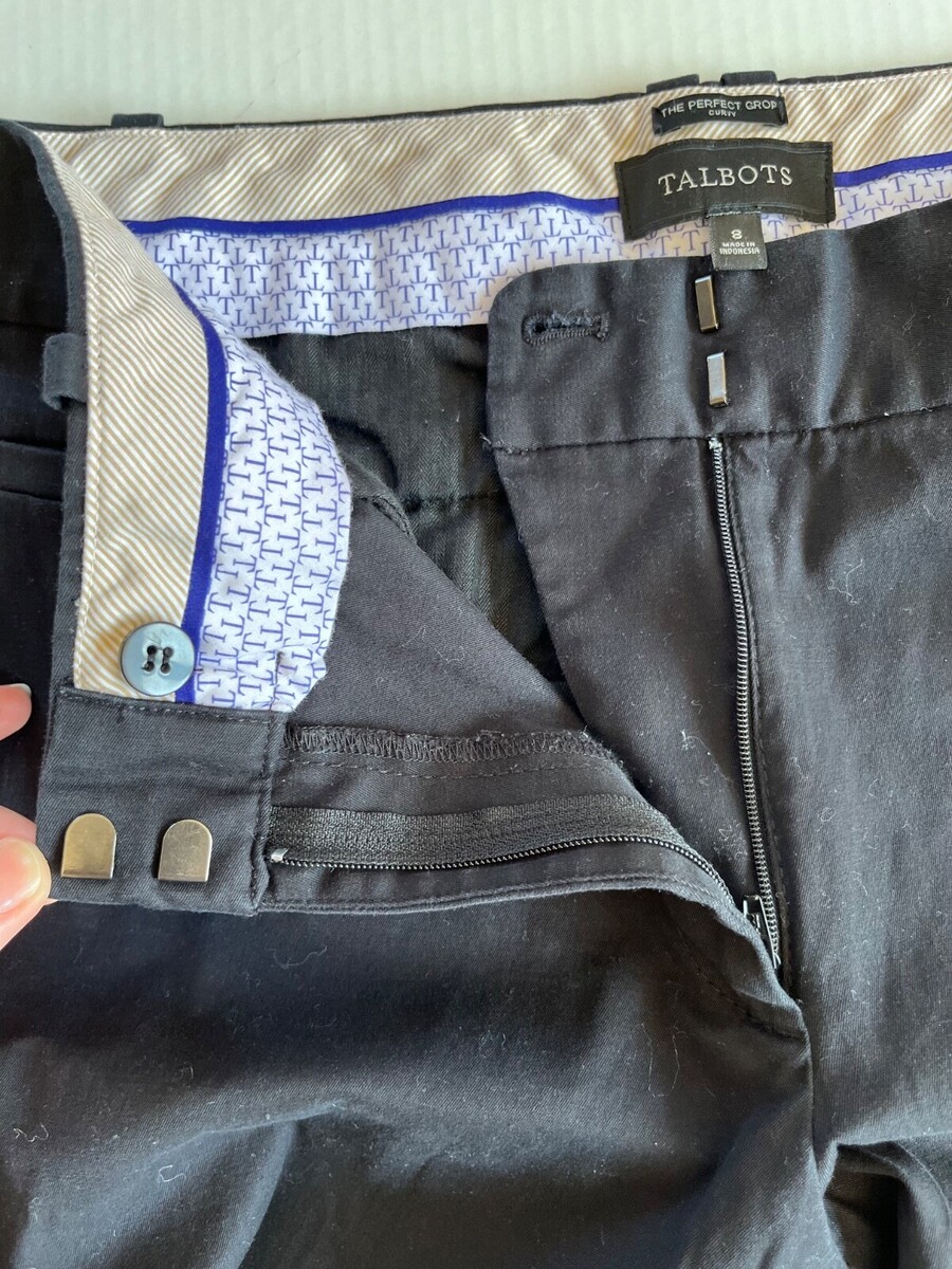 - Talbots Perfect Crop Black Pants Twill High Rise Trousers Coastal Pockets Size 8