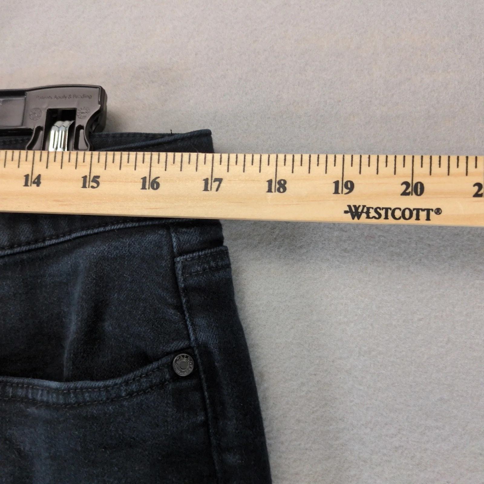 Features: Slim Fit, Mid Rise, Black, 5-Pocket Design, Ankle, Comfort, Easy Care, Pockets, Stretch, Solid Pattern, 34 in Measured Waist, 27 in Inseam, Button Zip Closure, No Accents, Machine Washable