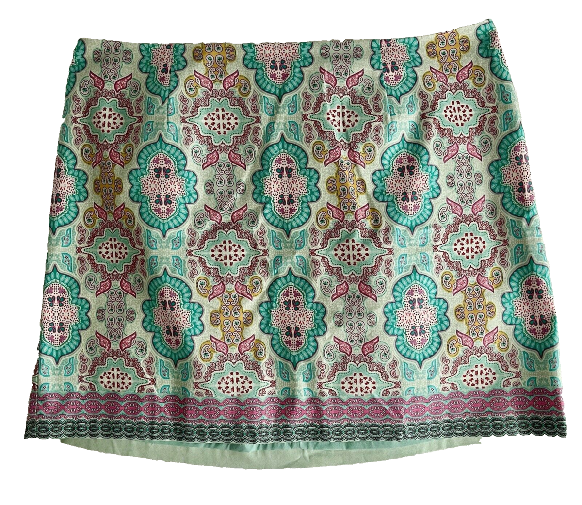 Talbots Woman Petite Aqua, Pink, Gold Print Lined Pencil Skirt
