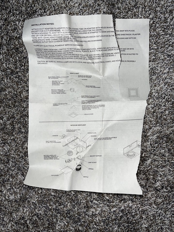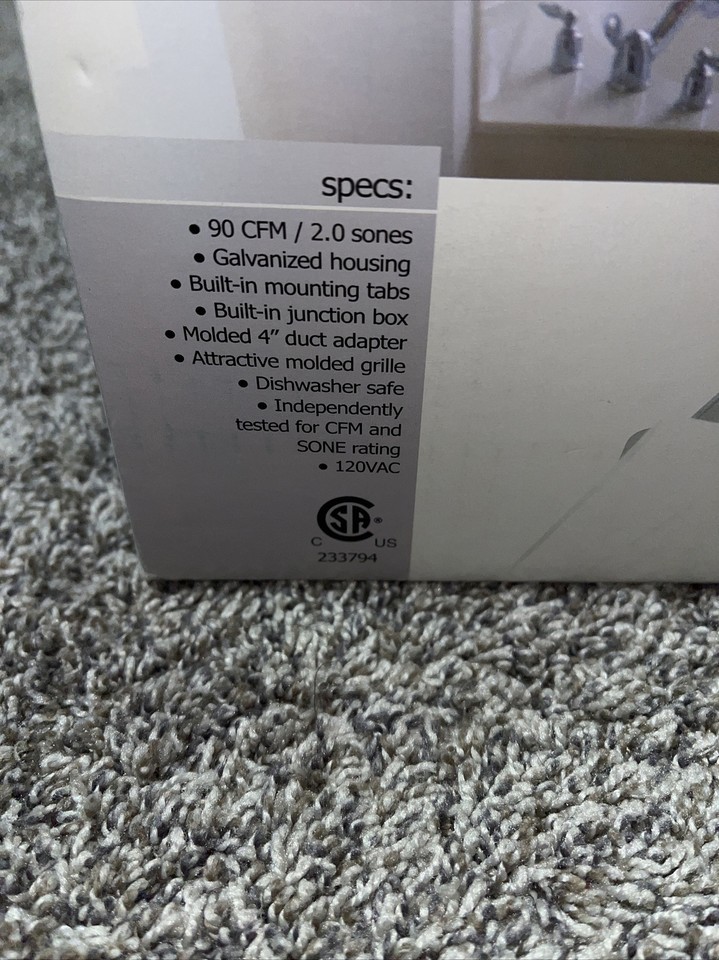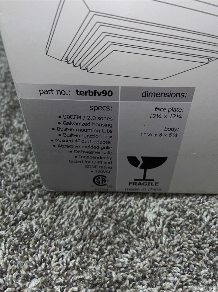 Tamco 90 cfm Bathfan Terbfv90 open box.