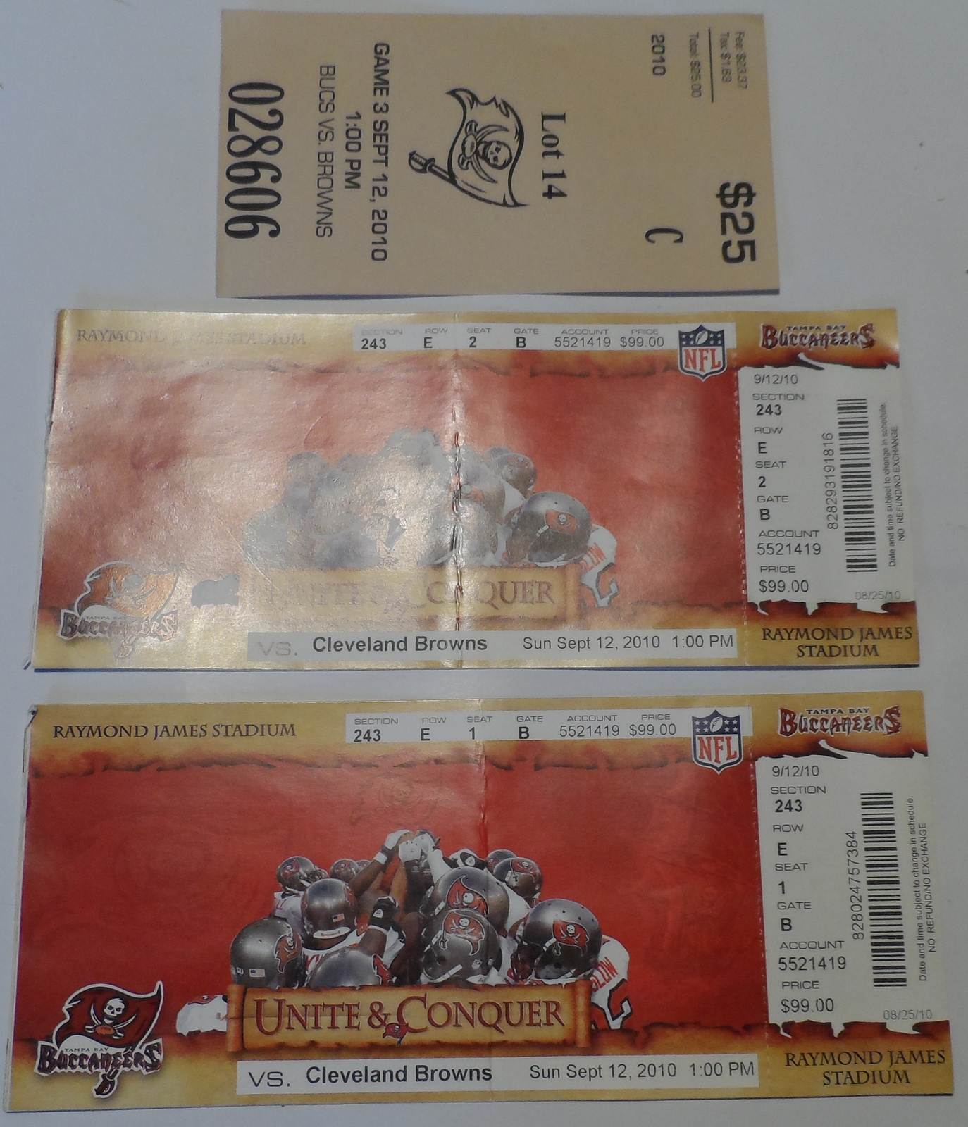 - Tampa Bay Buccaneers 2010 Ticket Stubs Vs. Cleveland Browns 3 pc. Unite Conquer