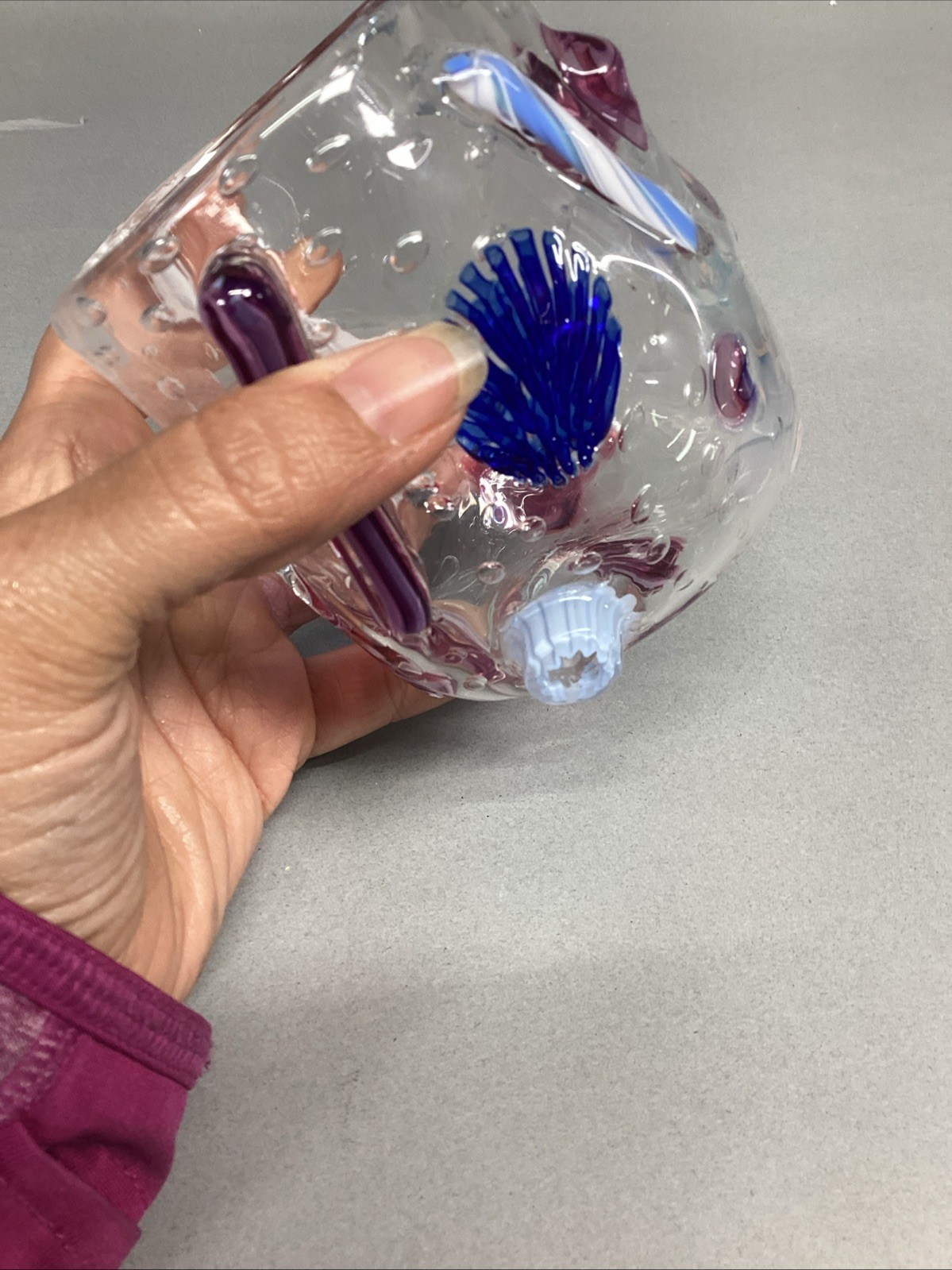 - Tandem Works Vino Mosaic Hand Blown Glass Cup Or Vase - Sea Shell Beach Theme