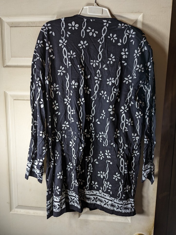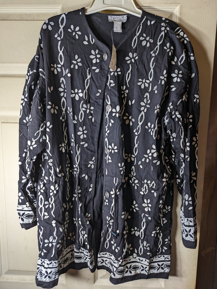 This elegant blouse from Tanner Collection is a must-have for any fashion-forward woman. The black and white floral pattern is perfect for any occasion, and the long sleeves add a touch of sophistication. The adjustable straps and shoulder pads ensure a comfortable fit, while the pockets provide a practical touch.